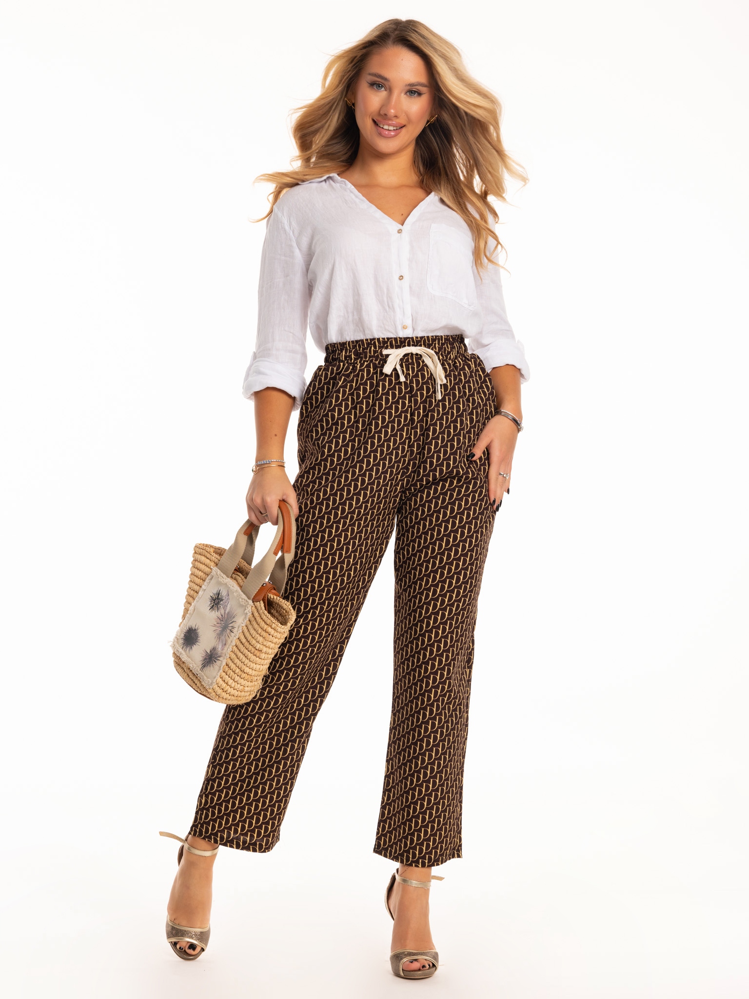 Rewelacyjne Stylowe LUŹNE SPODNIE DAMSKIE Piękny Wzór Duże Rozmiary