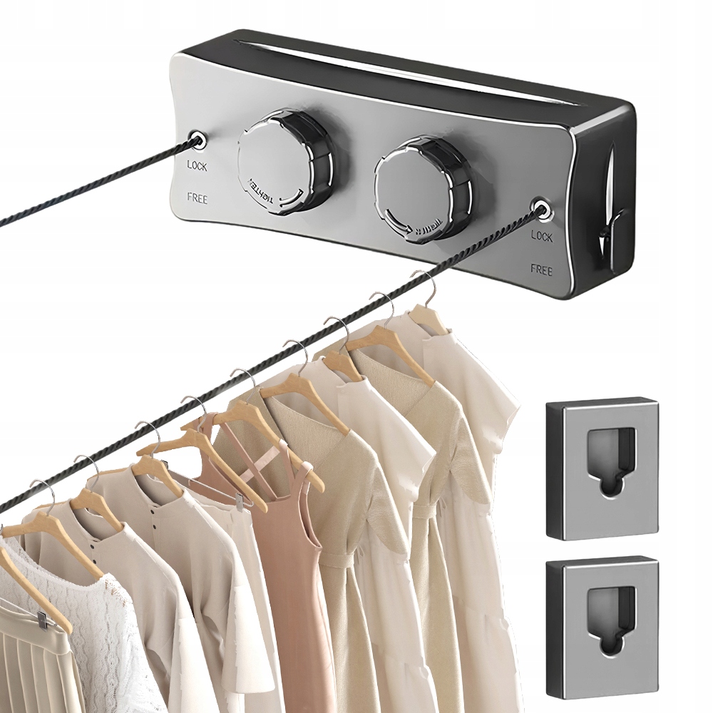 - Розширювана настінна вішалка для одягу має міцну алюмінієву монтажну основу. Навіть важкий одяг можна надійно тримати на мотузці без ризику хитання чи падіння.