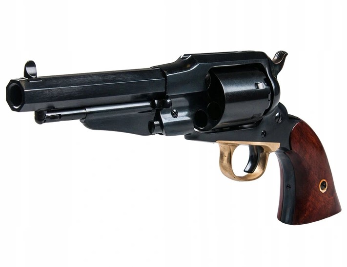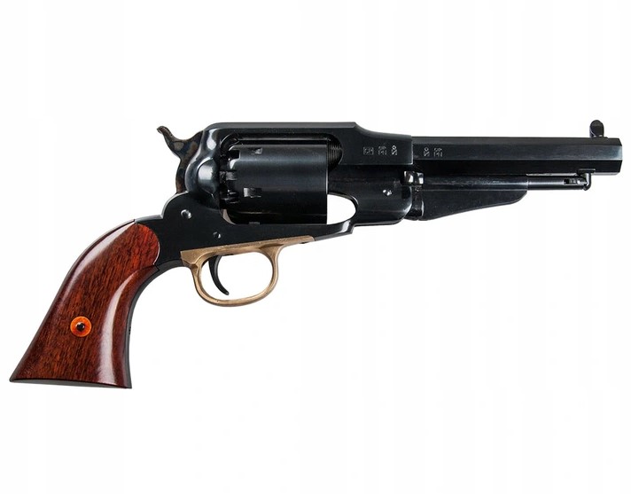 UBERTI Remington New Army 1858 .44 5.5" - найякісніша копія револьвера з дульним заряджанням із чорним порохом 1863-1875 років. Модель Remington є першим револьвером, виготовленим із закритою рамою з нержавіючої сталі. Накладки ручок виготовлені з горіхового дерева .44