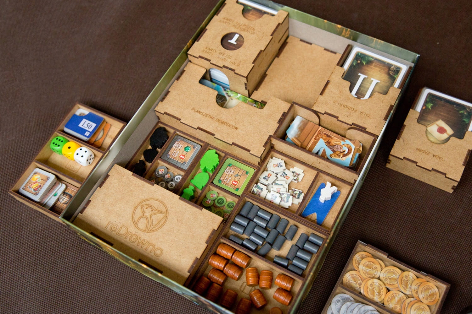 - Контейнери для жетонів і маркерів допомагають підтримувати стіл у порядку,