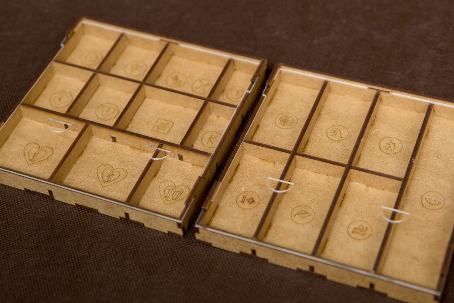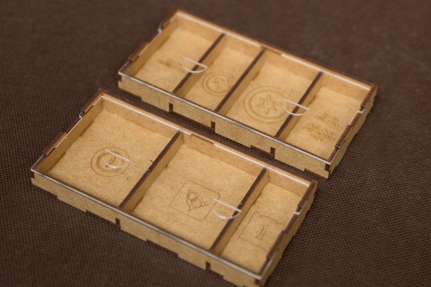 - Контейнери мають гравіювання, які полегшують упорядкування елементів гри.
