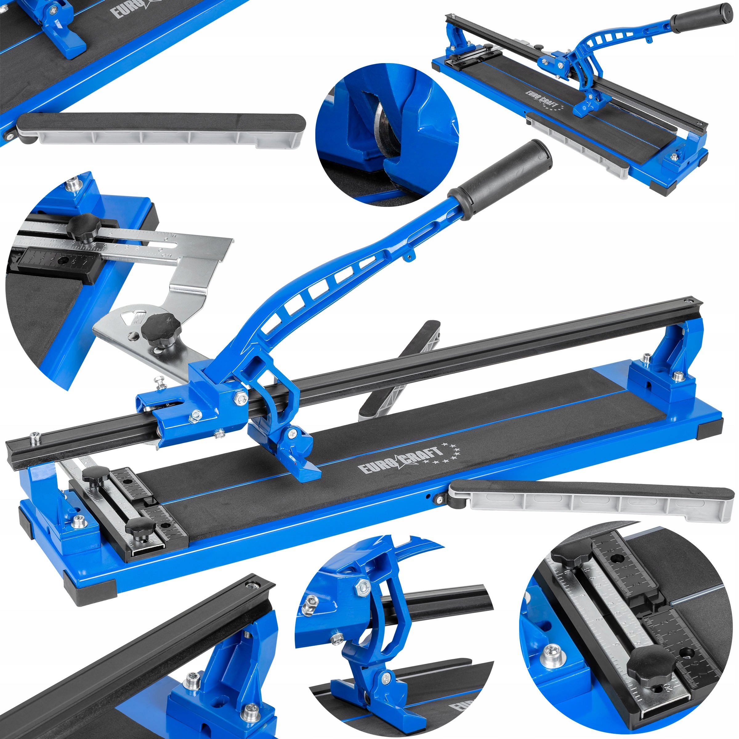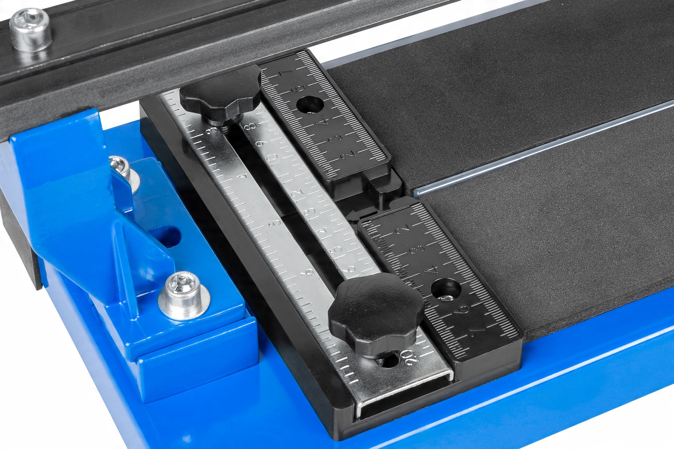 Точний масштаб дозволяє точно розрізати плитку певної ширини. Стільниця покрита м'яким поролоном, що дозволяє точно розбивати плитку без додаткових пошкоджень.