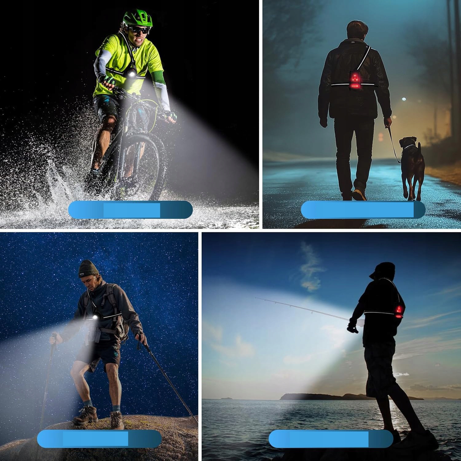 Біг світильники для бігунів світлодіодна лампа для грудної клітки для ходьби для ходьби ліхтарик з кутом регульованого собаки 90 ° USB акумулятор водонепроникний ліхтарик для собак чорні собаки