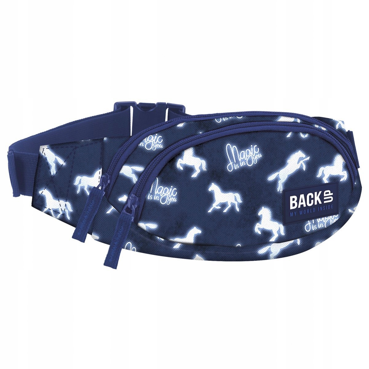 Містка та функціональна сумка на пояс. Ідеально підходить для прогулянок або інших літніх заходів. Сумка незамінна для тих, хто цінує комфорт і любить мати так звані «вільні руки». Характеризується дуже ретельною обробкою та цікавим візерунком із мотивом коня. Сумка виготовлена з міцного і водонепроникного матеріалу. Основне відділення,одна захищена задня кишеняіпередня кишенявдало помістять телефон, ключі, гаманець, серветки та інші дрібниці. Велика пряжкадуже зручна у використанні. Товар підходить до рюкзаків і пеналів цієї ж серії.