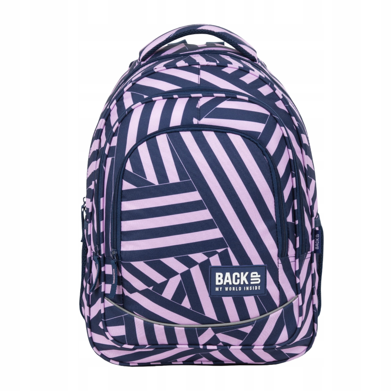 Широкі, перетинаючи смуги в незвичайному кольоровому поєднанні граната та рожевого кольору. Назва візерунка: Ремені. Інтер'єр: - 3 камери - 2 бічні кишені для пляшки з водою - у першій камері 2 додаткові кишені для ноутбуків та планшет - зручний додатковий організатор з кишеню на блискавці та клавішу в передній камері - м'які брекети з регулюванням довжини - зручна ручка Для перенесення рюкзака та додаткової підвісної ручки - дна рюкзака, виготовленої з армованої тканини - світловідбиваючі елементи спереду та ззаду Рюкзак - розмір - 42x30x20 см - вага: 720г