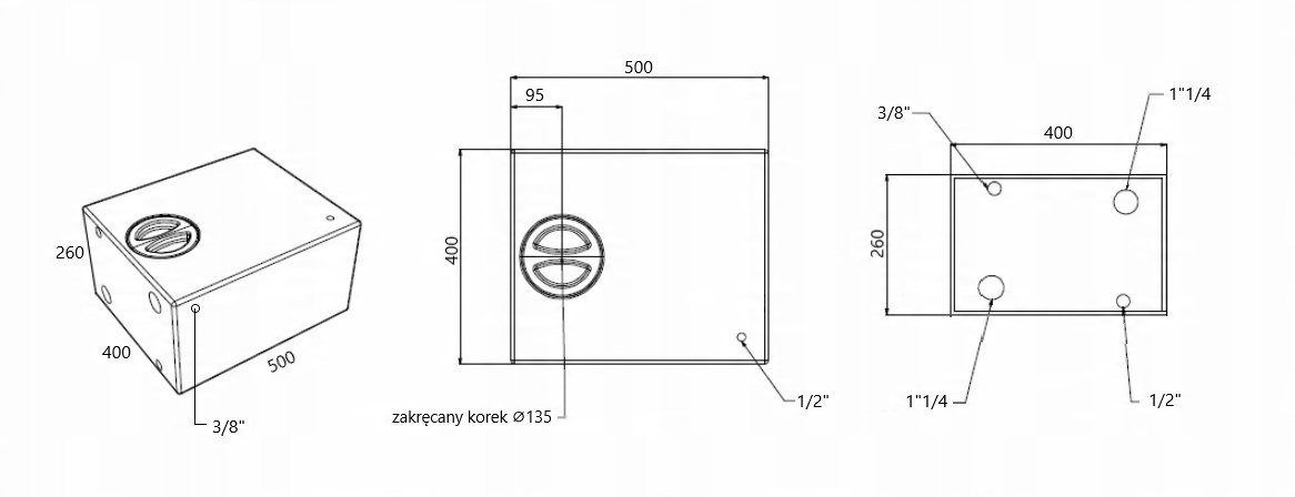 РЕЗЕРВУАР ДЛЯ ВОДИ 47 ЛІТРІВ 500х400х260 ММ