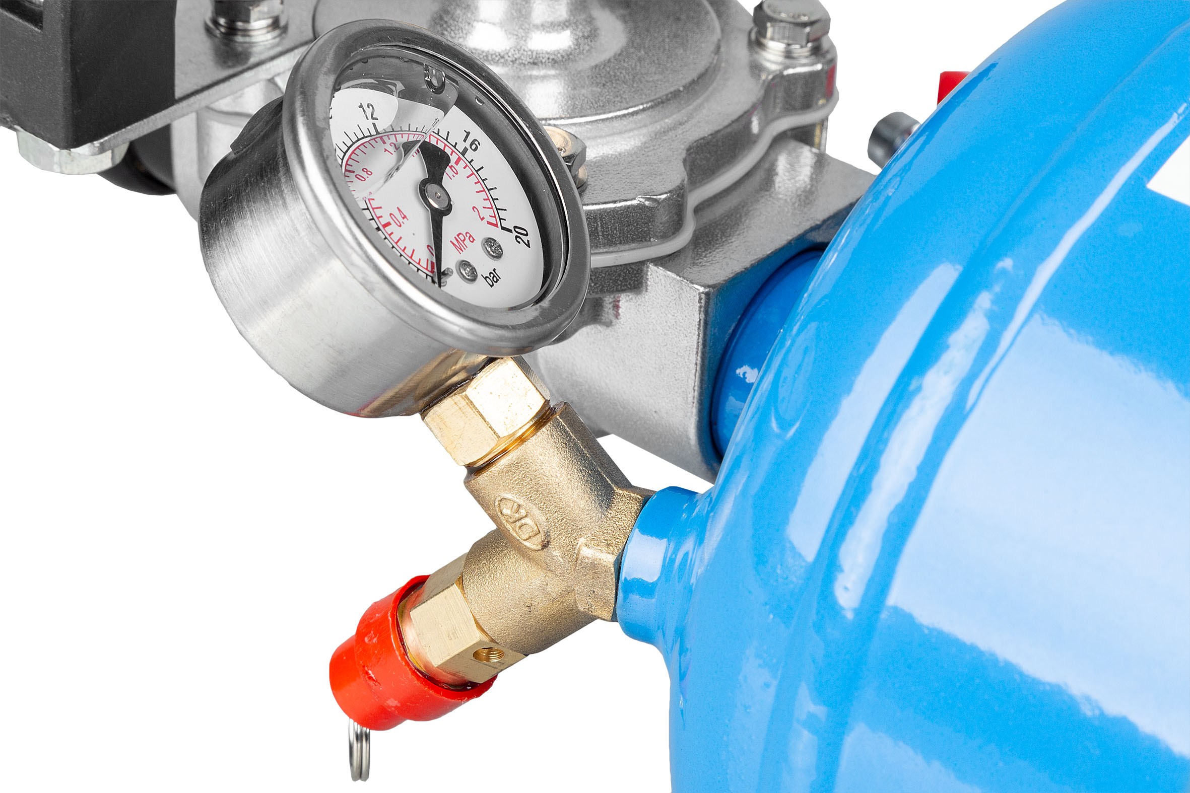 Важливим елементом пристрою є запобіжний клапан , що контролює тиск у резервуарі. Однак це вказує на поточний тиск накачаного повітря.