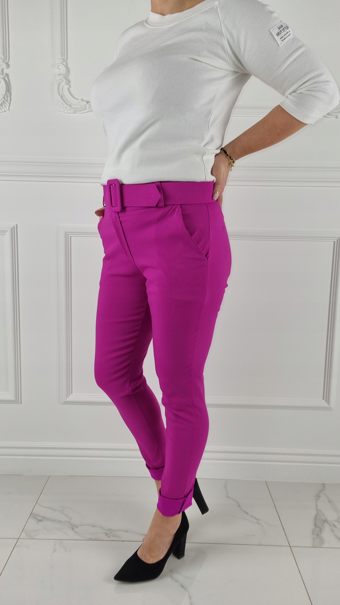 Еластичні штани-сигарети мають високу талію. Чудово поєднуються з високими підборами, завдяки своїй універсальності підходять практично до будь-якого стилю. Гнучкий матеріал підкреслює жіночу фігуру. Штани приталені та стрейч. Підкресліть свої жіночі форми! Зробіть свій повсякденний образ унікальним.