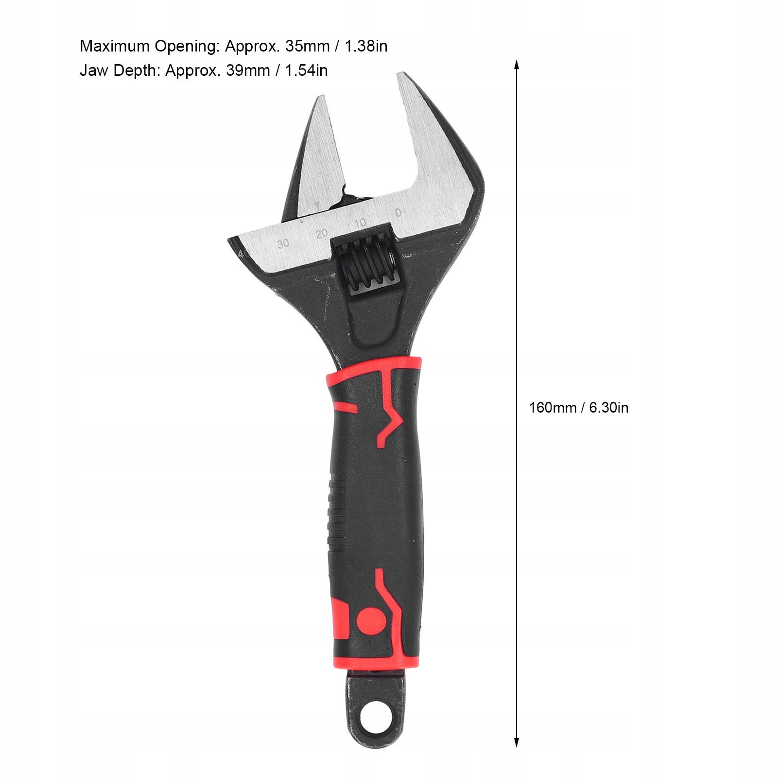Функція:1. [Великий отвір] Завдяки максимальному отвору губки 35 мм, цей регульований гайковий ключ може працювати з різними розмірами кріпильних елементів, включаючи більші гайки, болти та труби.