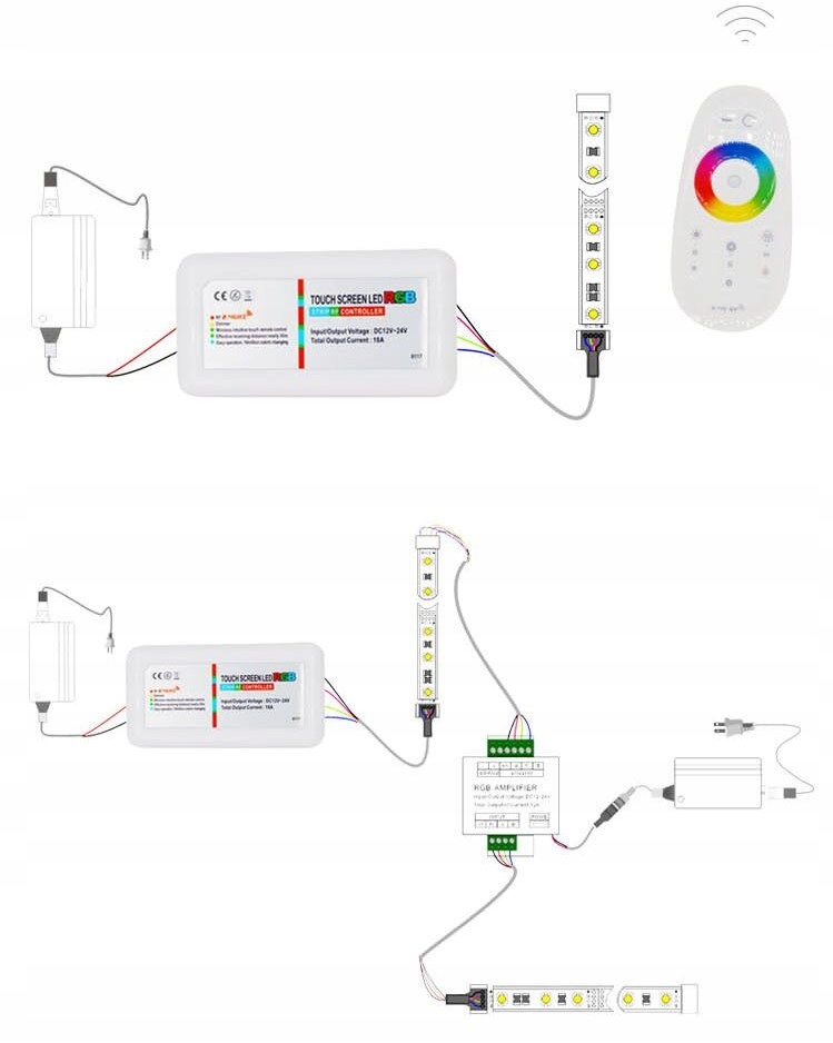 Контролер, пульт працює на радіохвилях тому проблем зв'язку з приймачами в даному випадку немає (RGB світлодіодна стрічка). Приймачі невеликі, тому їх можна розміщувати у важкодоступних місцях.