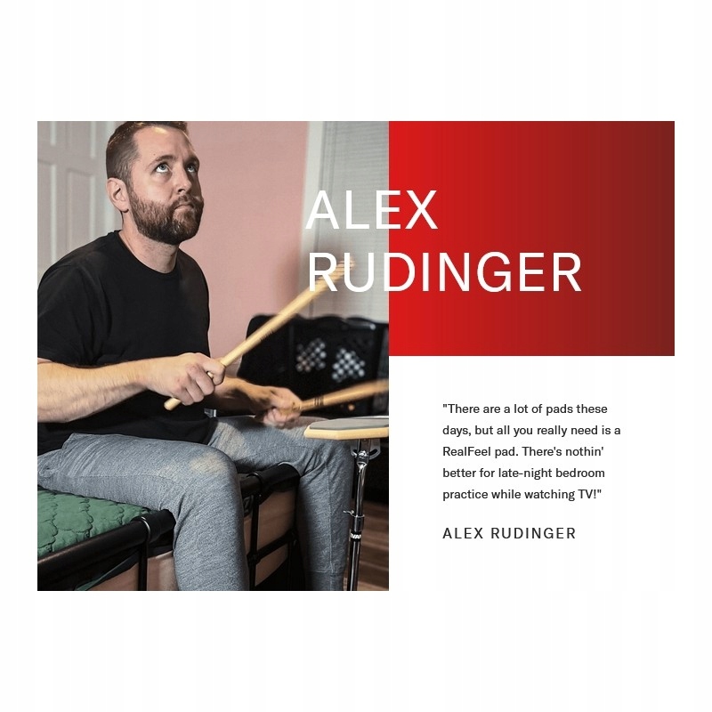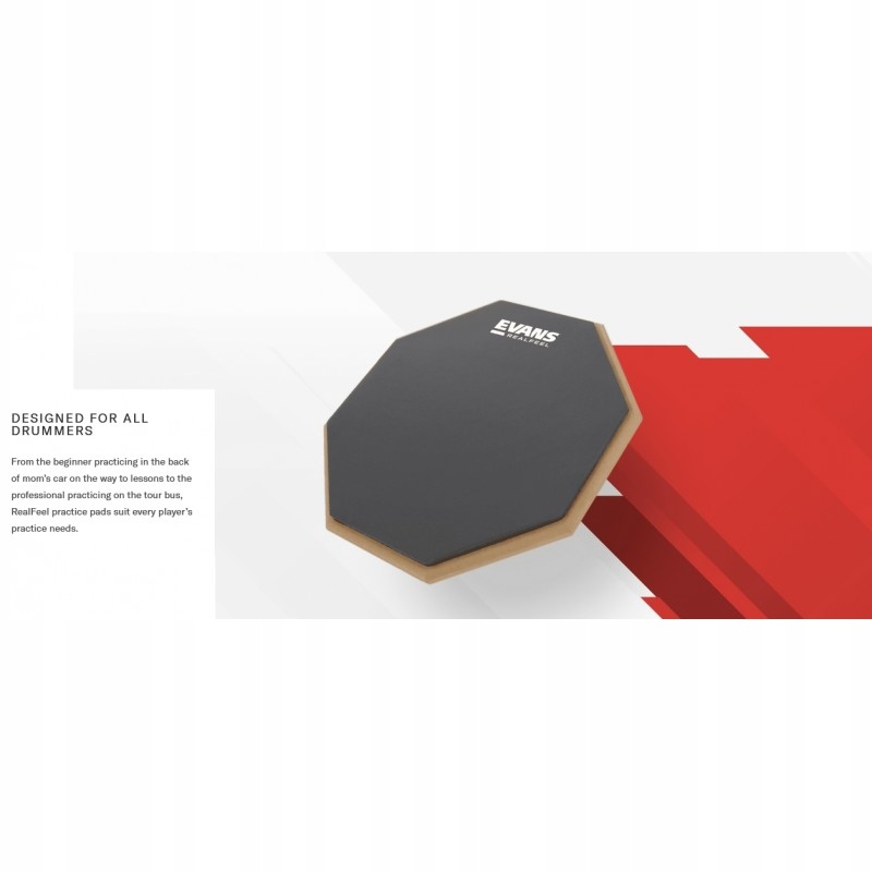 evans rf12d - велика подвійна вправа (реально відображає гру на дієслові); [2] Чорна поверхня (на задній частині колодки) - тверда. Він краще імітує інсульти на тарілках (Hi-Hat, Ride Rhythms)