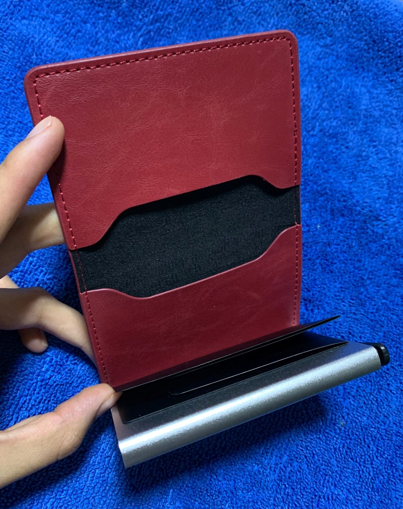 Пропозиція, невеликий чоловічий портфоліо розміщення карток з 8 слотами кредитної картки в корпусі алюмінію (анти -Rfid, що запобігає даним з картки -анти -крадіжкова система) та залишок банкнот.