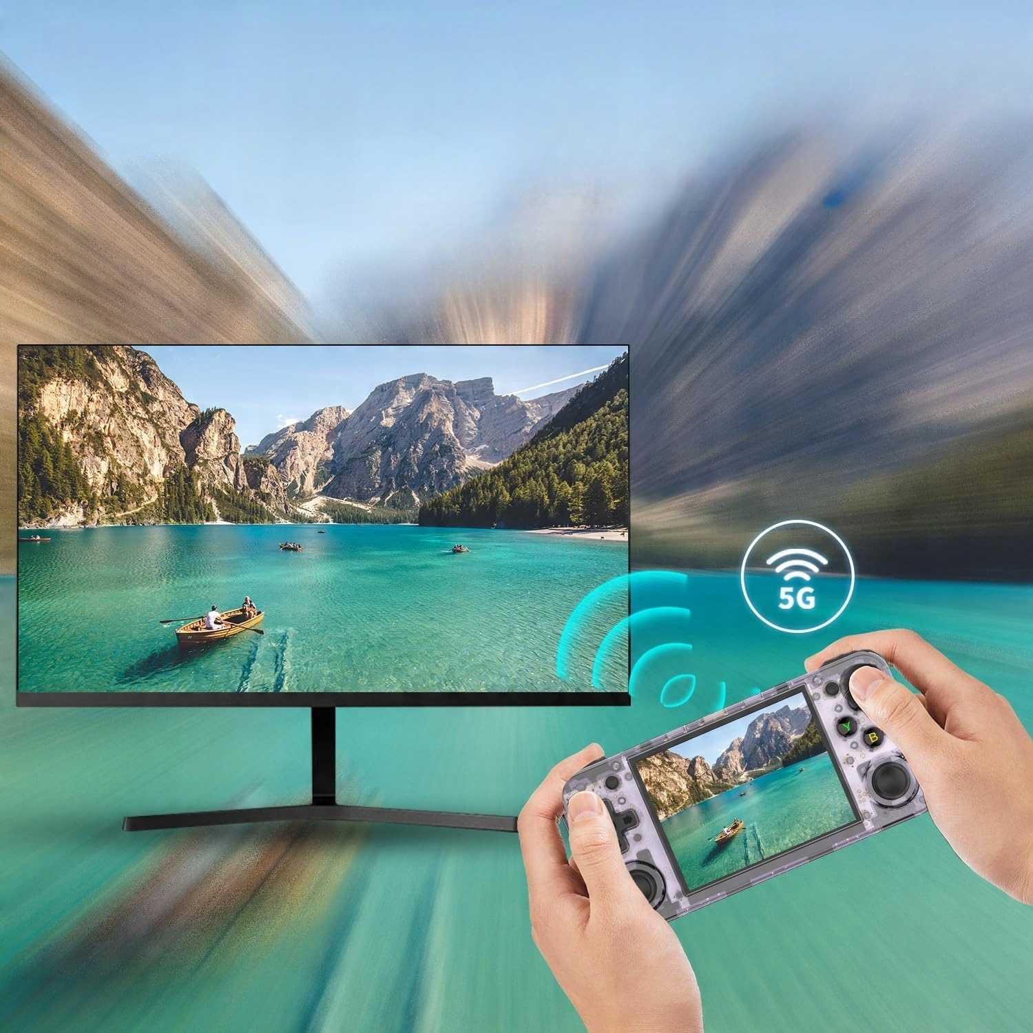 rg35xx h консоль з технологіями Wi -Fi 5G та Bluetooth 4.2 дозволяє грати в Інтернет та з'єднуватися з контролерами та навушниками.