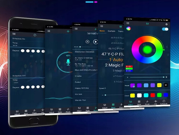 - ✔️ Вбудовані сцени- у програмі є до 213 різних режимів освітленнянаприклад, освітлення падаючих ділянок світла різними кольорами або зміна кольорів по черзі< /li>
