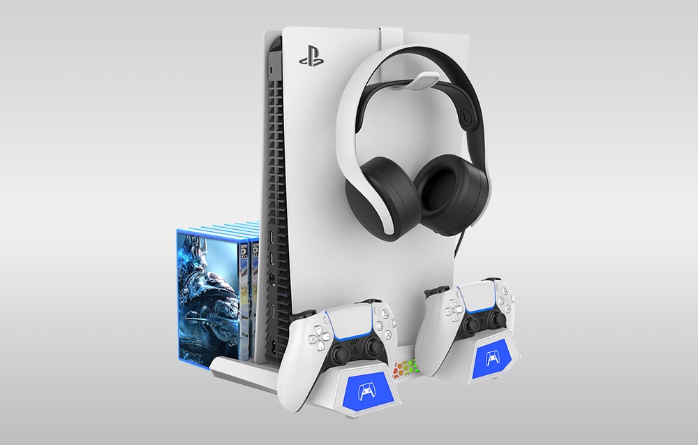 Підставка iPega PG-P5S023 дозволяє ідеально організувати вашу консоль, контролери та аксесуари. Оснащений тримачем для навушників, місцем для ігор і двома виділеними слотами для зарядки контролерів DualSense, він забезпечує зручність і порядок в одному місці. Завдяки телескопічній ручці консоль надійно кріпиться, а додаткове охолодження підтримує вентиляцію, запобігаючи перегріву пристрою.