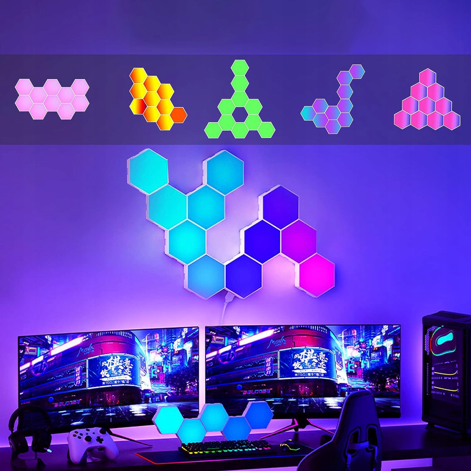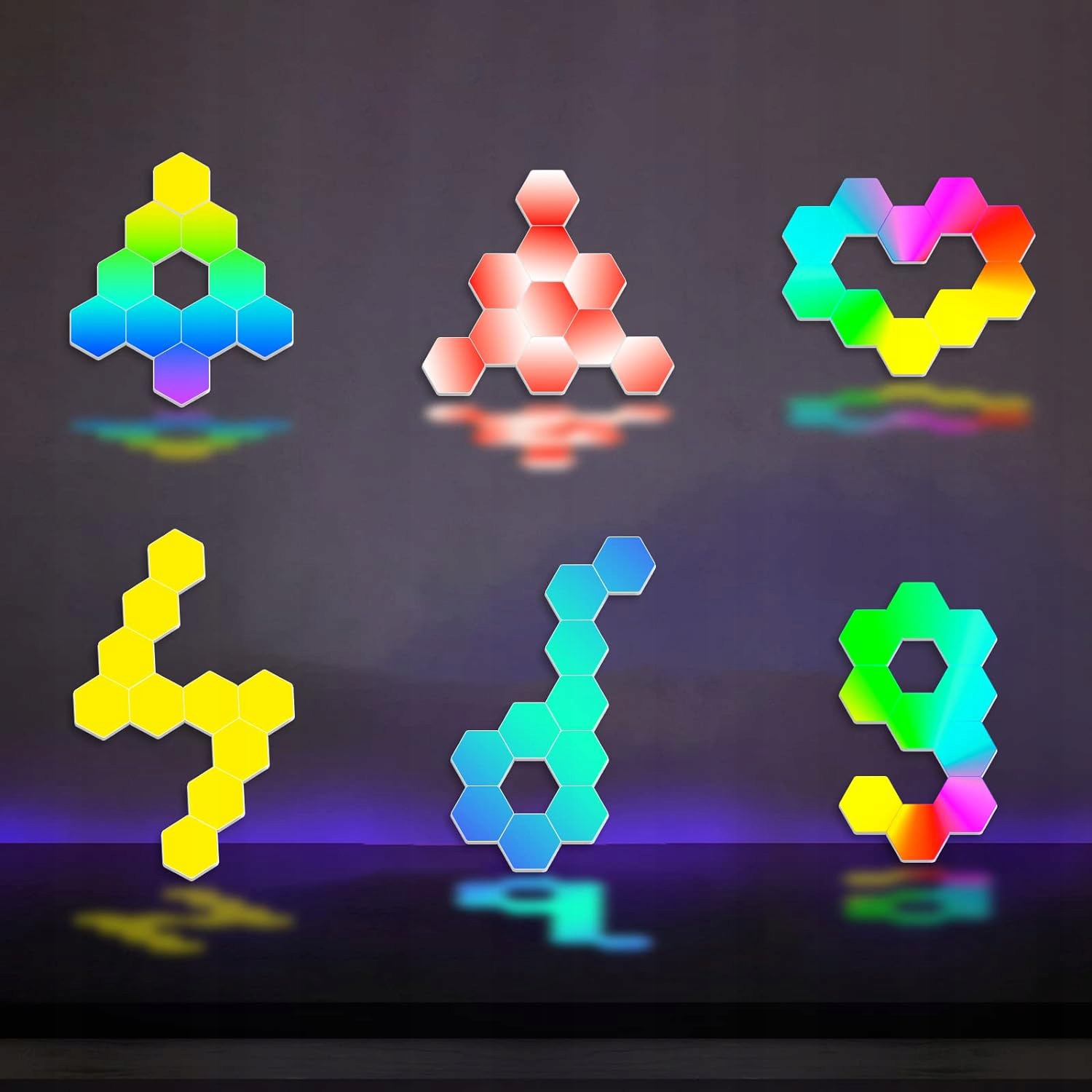 - ✔Класна шестикутна настінна лампа: із 16 мільйонами варіантів кольорів і понад 210 сюжетними режимами ця шестикутна настінна лампа пропонує безмежні можливості освітлення. Створіть ідеальну атмосферу для кіновечорів, вечірок та вечорів ігор. Це ідеальне доповнення до домашнього кінотеатру, ігрової кімнати чи різдвяних прикрас.