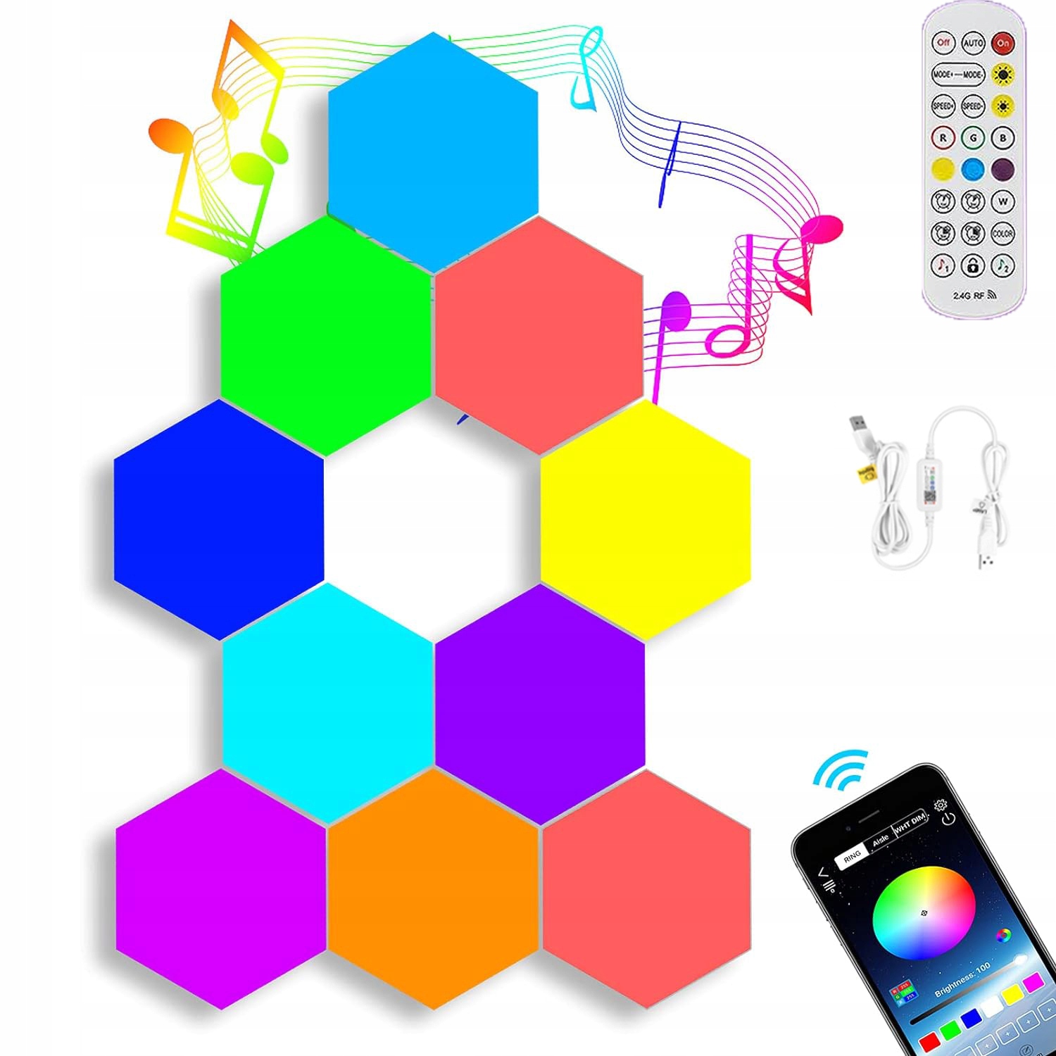 - ✔Цікава комбінація DIY: Ми підготували для вас 10 незалежних шестикутних світлодіодних стін. лампи, які можна довільно поєднувати в різноманітні цікаві візерунки та стимулювати необмежену уяву для створення власного персоналізованого прохолодного простору.
