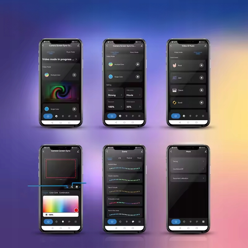 - Релаксація та медитація: Виберіть більш спокійний музичний режим для створення розслаблюючих світлових ефектів, ідеальних для медитації чи вечірньої релаксації.
