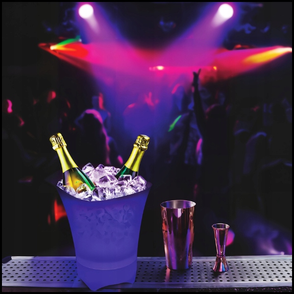 Відерце для льоду оснащене світлодіодним підсвічуванням RGB, яке дозволяє змінювати кольори та створювати динамічні світлові ефекти.