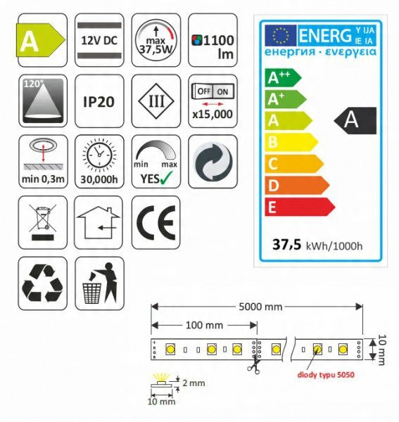 - Споживання енергії KWH/1000H: 37,5 кВт/год 1000h