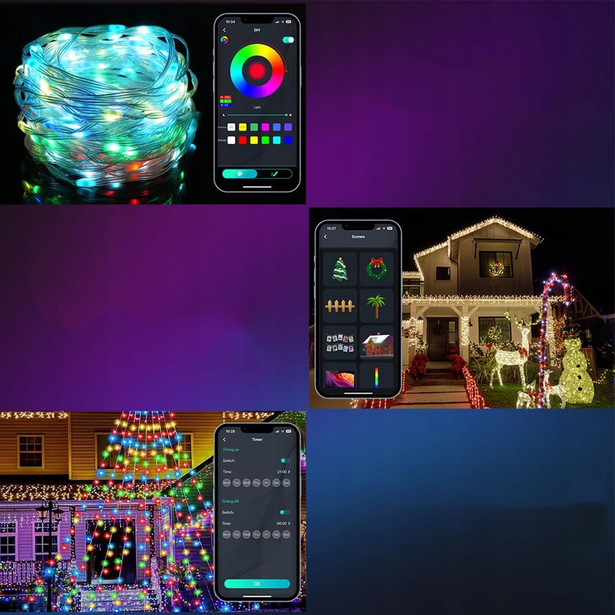 Їх можна встановити на вулиці, на дереві чи сходах, як ялинкові вогні, для спальні, кухні, стелі, сходів, вікна, шафи, телевізора, гаража, як різдвяні чи сімейні прикраси, а також для створення святкової атмосфери на фестивалях, вечірках, весіллях тощо. Вони пропонують різноманітне освітлення для стовбурів дерев, віталень, терас, садів, парканів тощо.