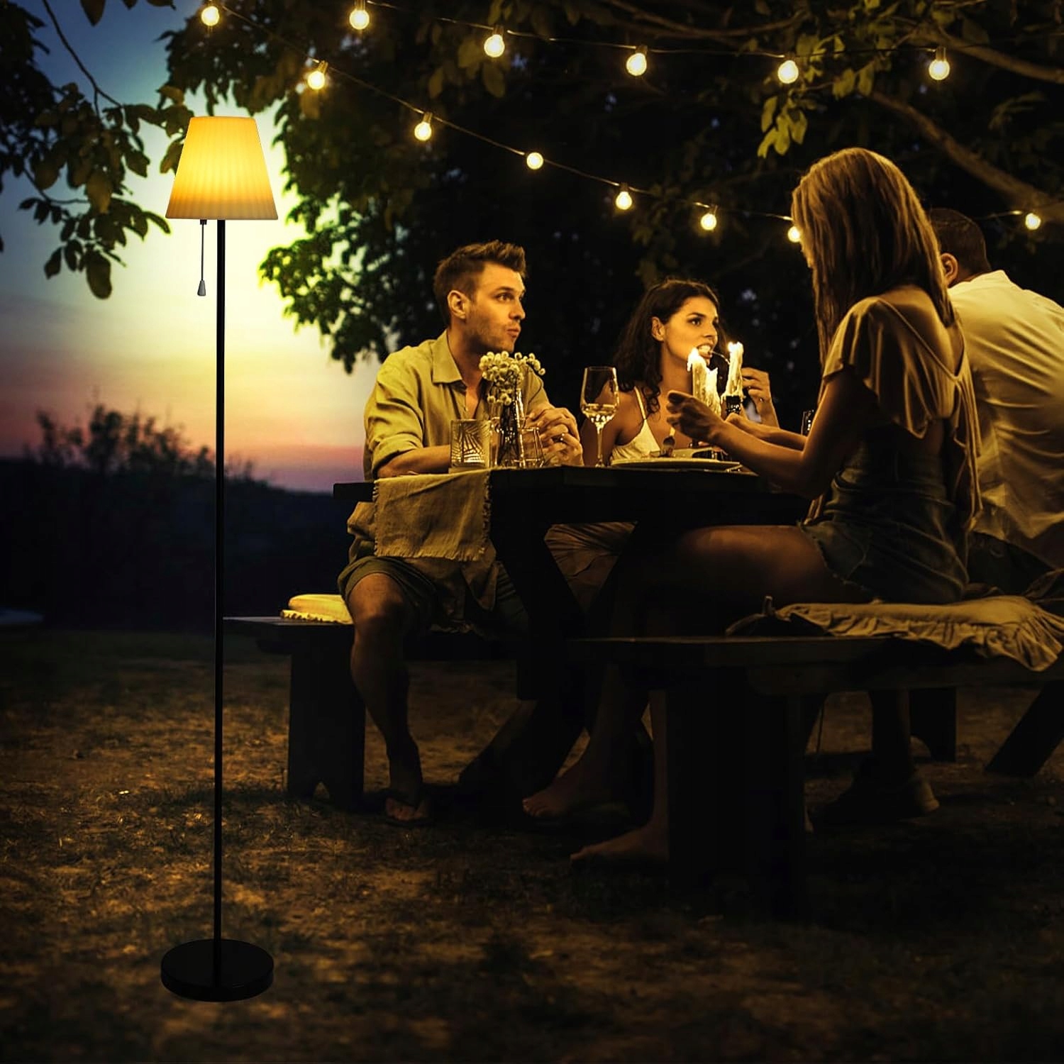 Лампа автоматично завантажується протягом дня і світить після темряви. Можливість зарядки USB забезпечує повну функціональність навіть у негоду. Режим свічок створює романтичну атмосферу. Дистанційне управління дозволяє легко контролювати від відстані до 8 м. Налаштування