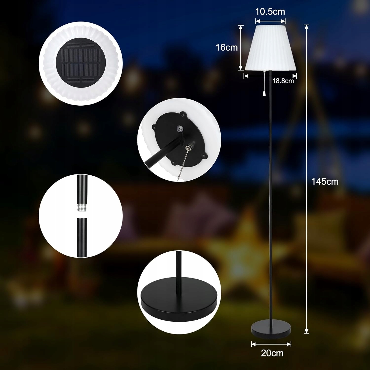 Lixada сонячна світлодіодна лампа - це чудовий вибір для тих, хто шукає стильне та функціональне освітлення. Завдяки Сонячній зарядці , багатозахисні ефекти RGB , сутінковий датчик та водостійкість працює як вдома, так і зовні.