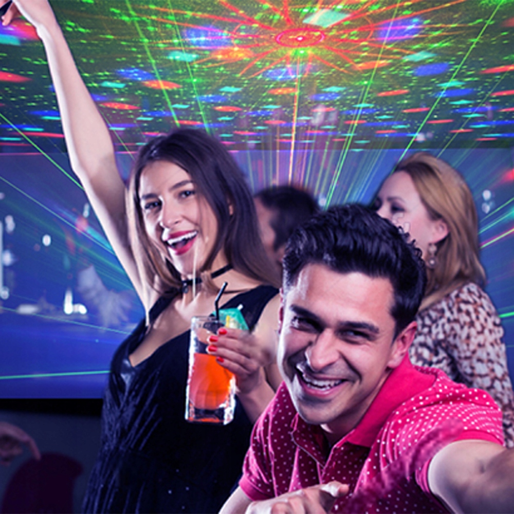 Наша диско лампа перетворить вашу кімнату на справжній танцпол! Завдяки лінзам і різнокольоровим світлодіодам він створює динамічні червоно-зелені візерунки.