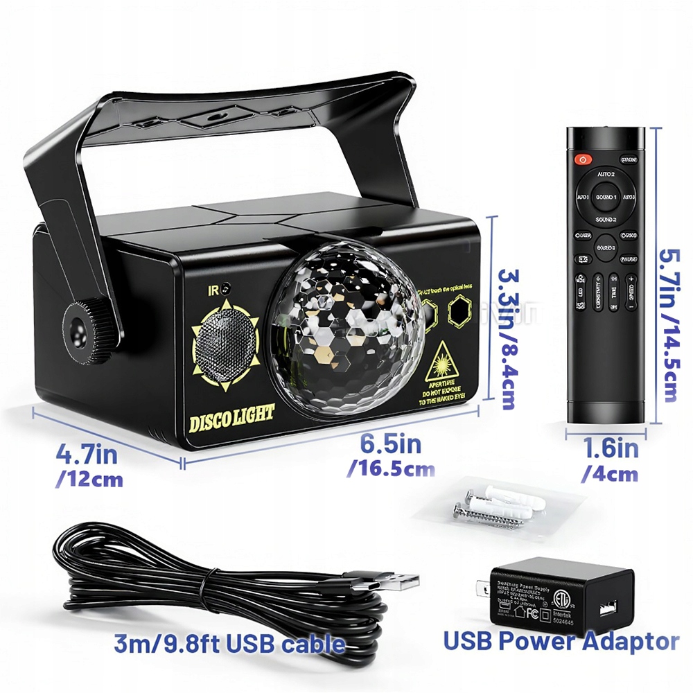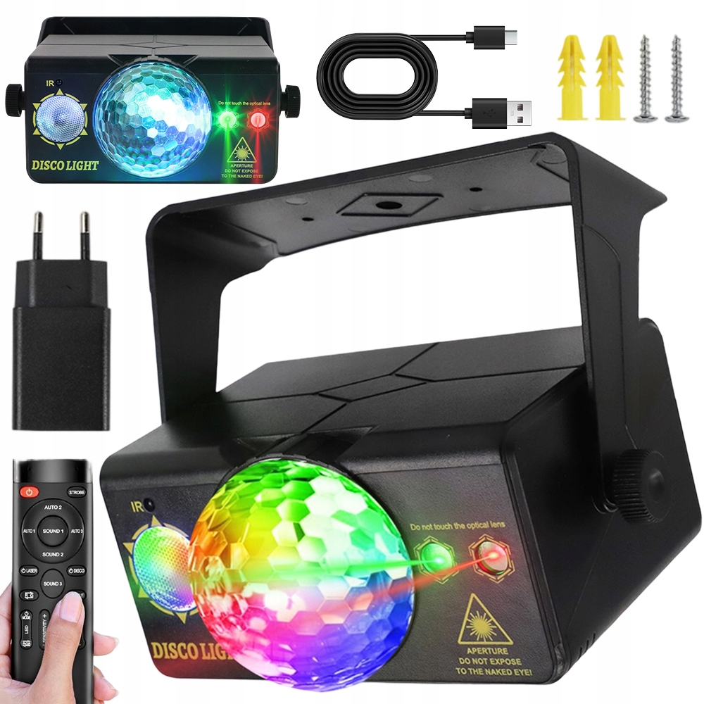 • Повний контроль: Пульт дистанційного керування дозволяє змінювати кольори, режими (автоматичний, стробоскоп, зовнішній звук) і встановлювати таймер. 🕒