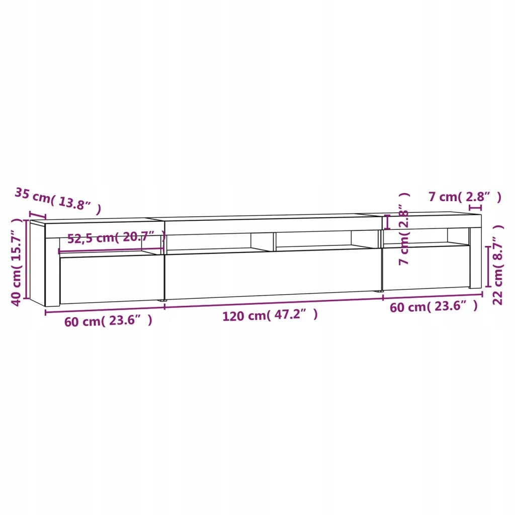 - Total dimensions: 240 x 35 x 40 cm (length x width x height)