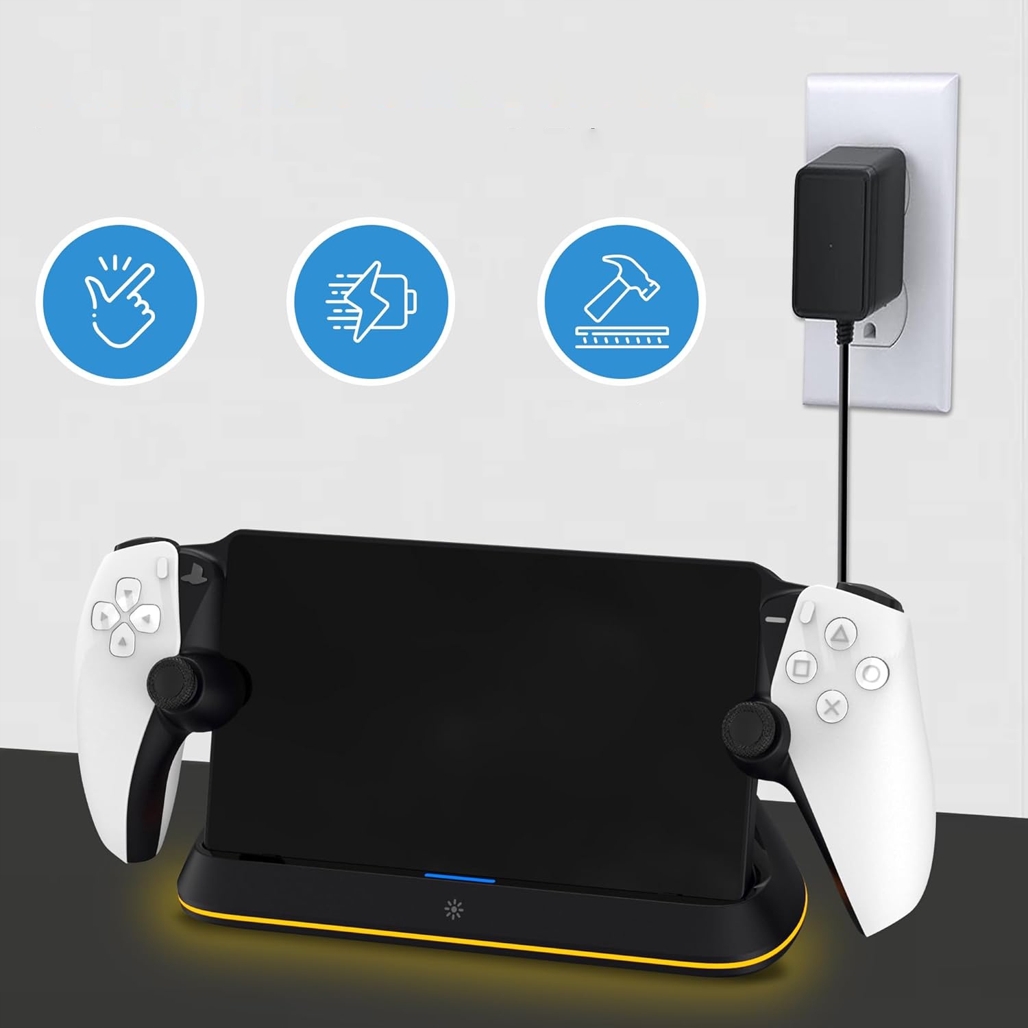 - 🎮 Легкість у використанні, підключіть адаптер типу C і розміщуйте його на зарядній станції для зарядки, без необхідності рівня. Їх можна вмикати та вимикати та вимикати режими, торкаючись кнопок на передній частині стійки.