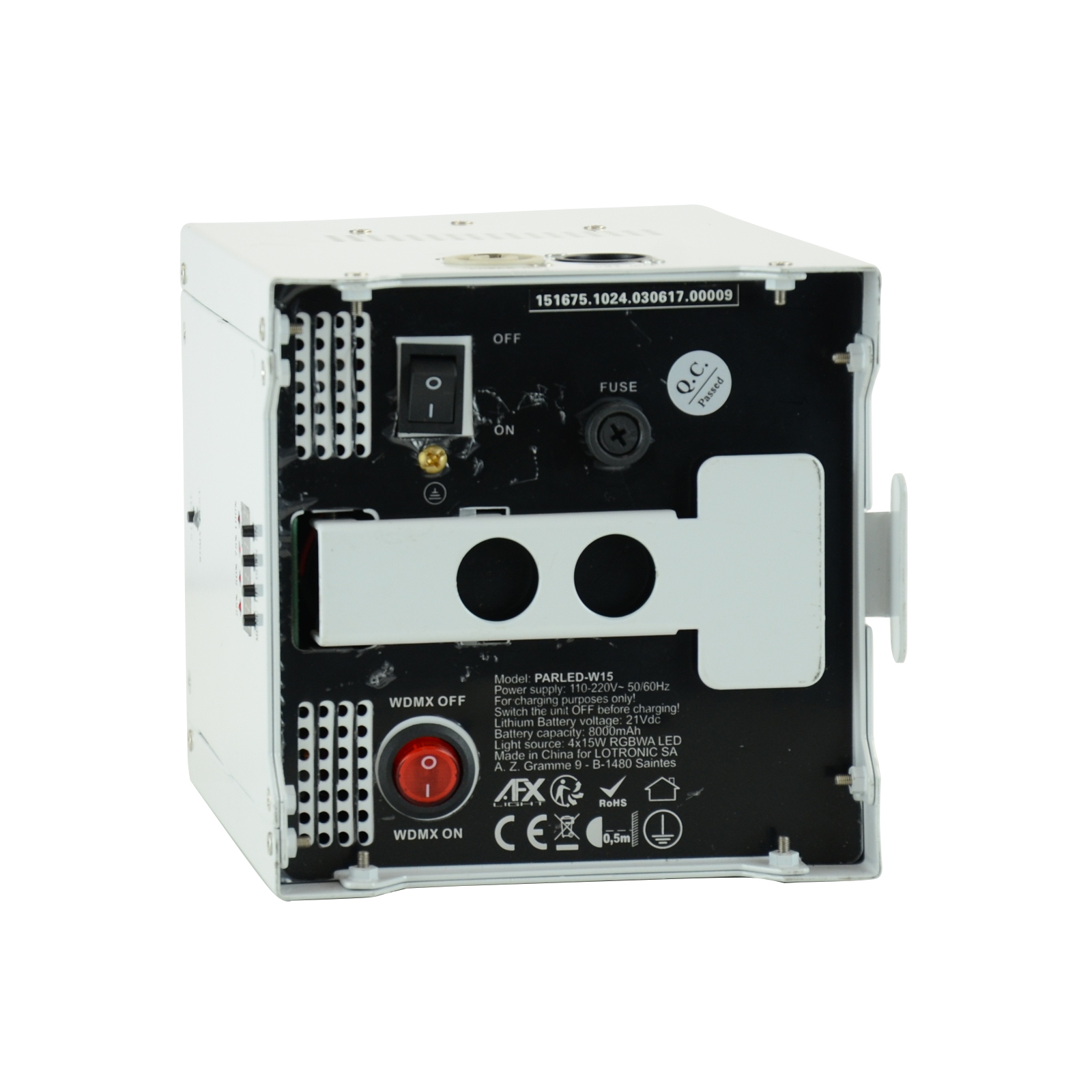 - PARLED-W15 WH — це автономний світлодіодний проектор (працює від батарейок) із 4 світлодіодами RGBAW потужністю 15 Вт (5 в 1). Ідеально підходить для точкового та/або мобільного освітлення.