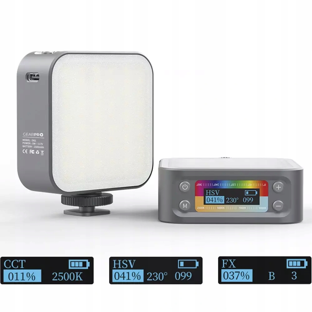 Професійна RGB лампа GeaPro LED-D01, зі зміною кольору, регулюванням кольору світла, підсвічування фільмів, відео, блогів для смартфона, фотоапарата, відеокамери, GoPro, Osmo Action, Insta, Xiaomi