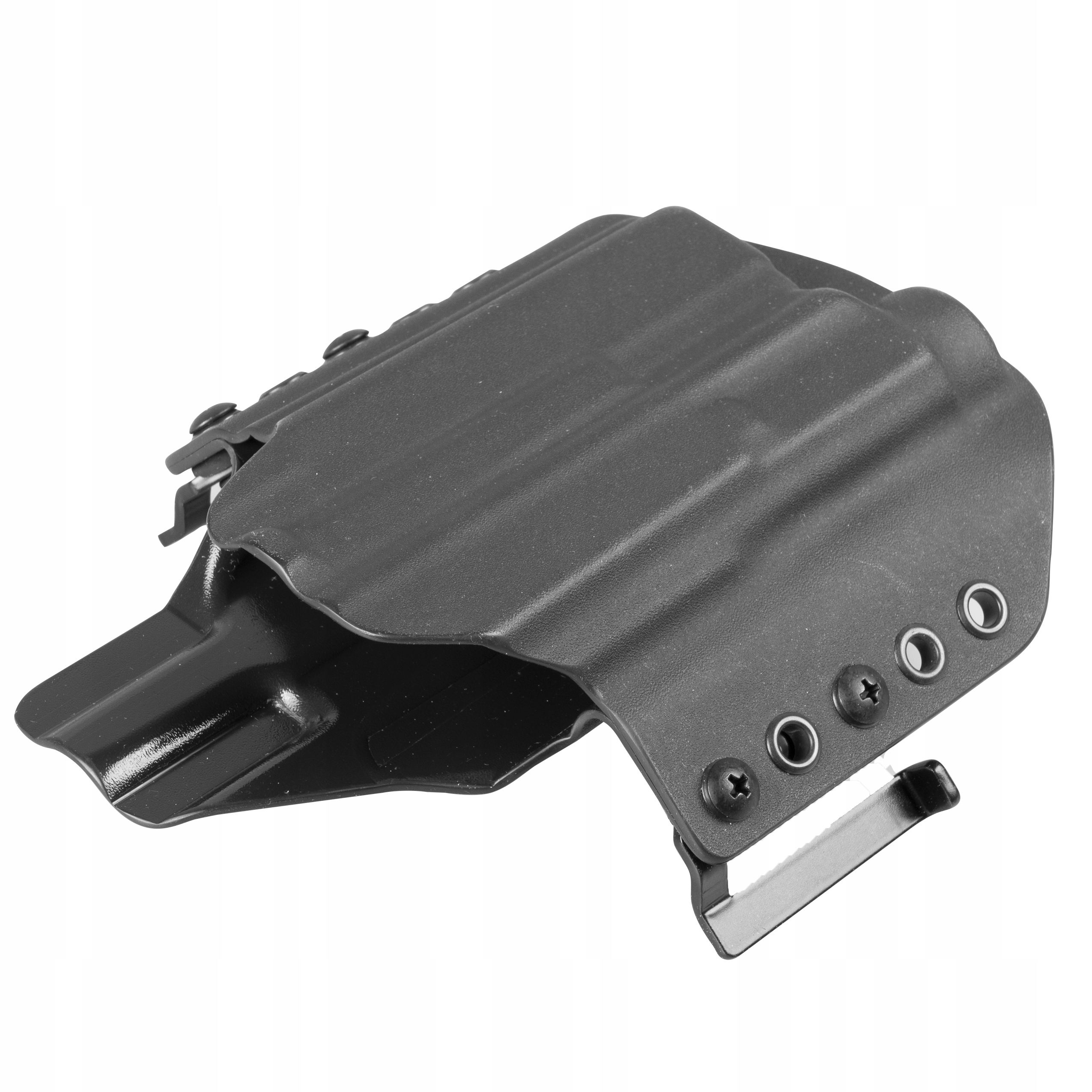 Модель, про яку йдеться, характеризується дизайном OWB (Over Waist Band), призначеним для носіння на зовнішньому боці пояса. Такий тип кобури гарантує високу зручність носіння і можливість швидко її втягнути. Якщо ви хочете використовувати його як кобуру EDC, конструкція ефективно притискає зброю до тіла, дозволяючи непомітно носити її під великою сорочкою, піджаком або піджаком. Кобура OWB також ідеально підходить для конфігурації тактичного або спортивного стрілецького ременя - ми можемо використовувати її як на стрільбищі, так і в повсякденному використанні. Кілька портів для кріплення петлі дозволять нам визначити вертикальне положення кобури.