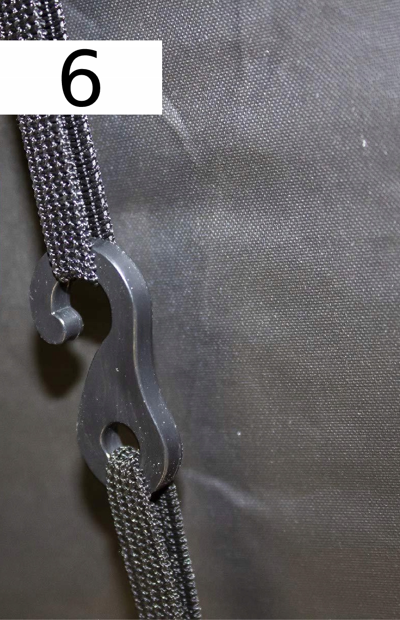 2. Вхід без блискавки - обережність є ключовою, тому немає блискавки. Вхід збільшений, тому він перекривається, кріпити намет не потрібно, або можна закріпити безшумними кріпленнями.