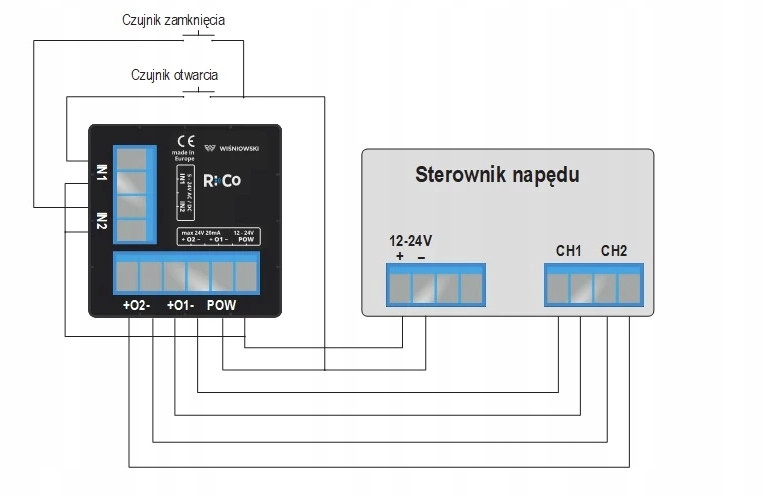 - Він має 2 виходи та 2 входи, завдяки чому контролер, окрім можливості керувати двома контурами, отримує зворотний зв’язок щодо їх стану (відкрито/закрито/проміжний стан)