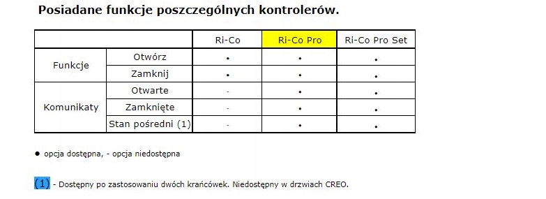Можливості використання окремих контролерів у продуктах WIŚNIOWSKI.