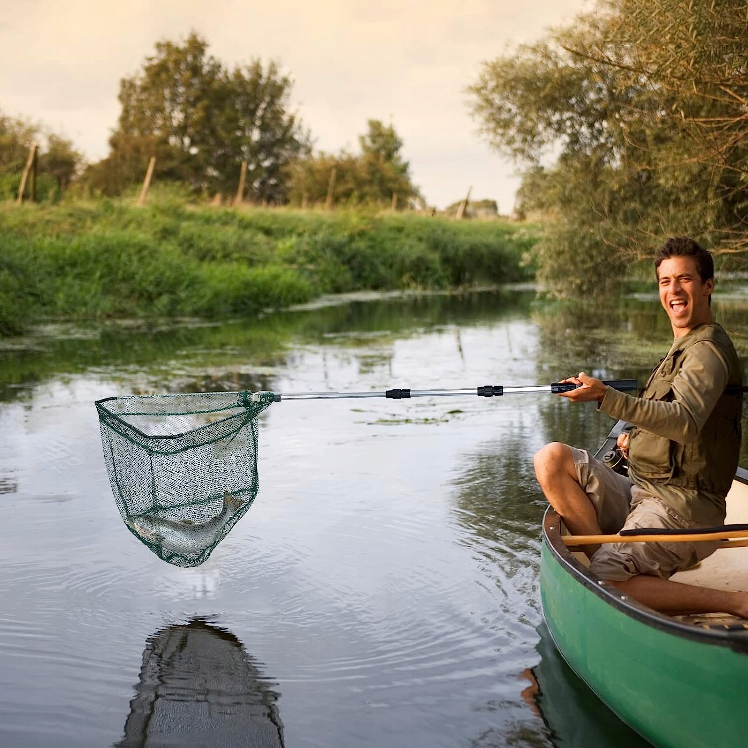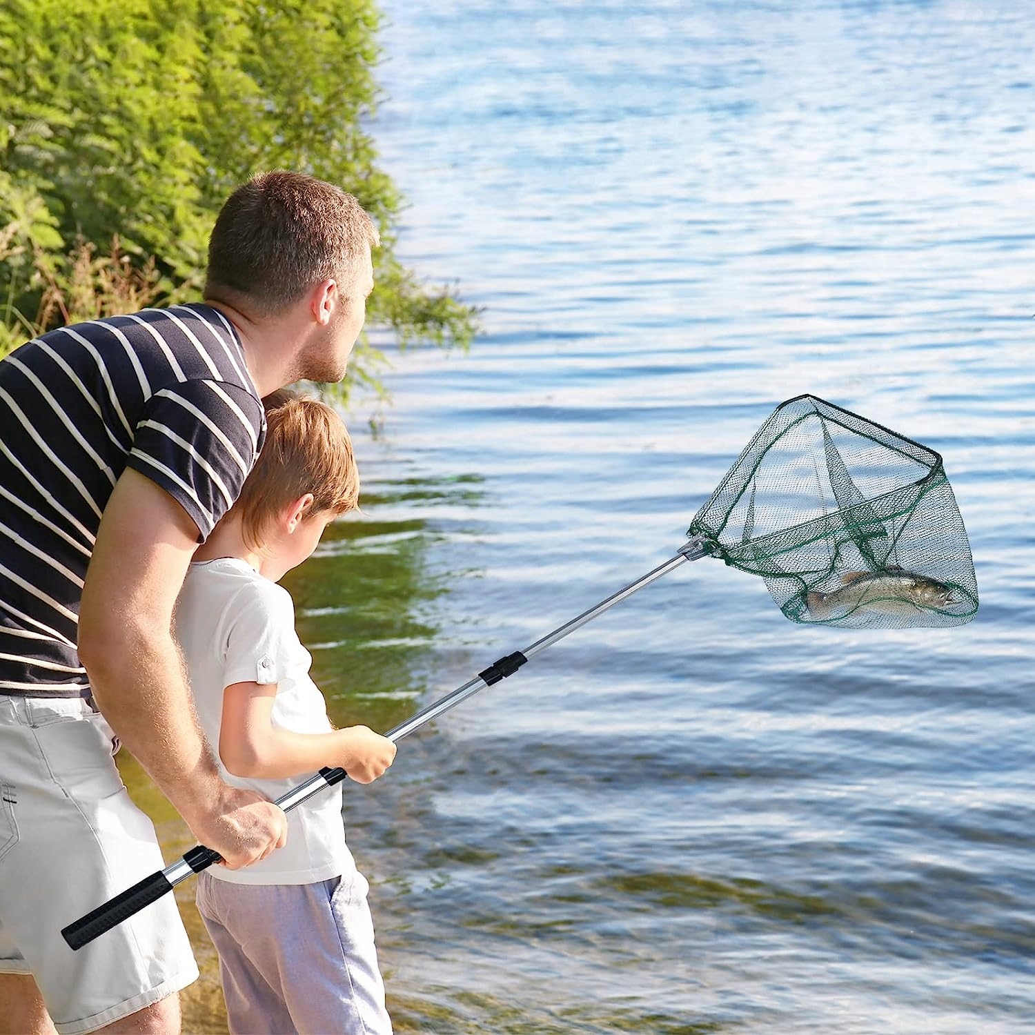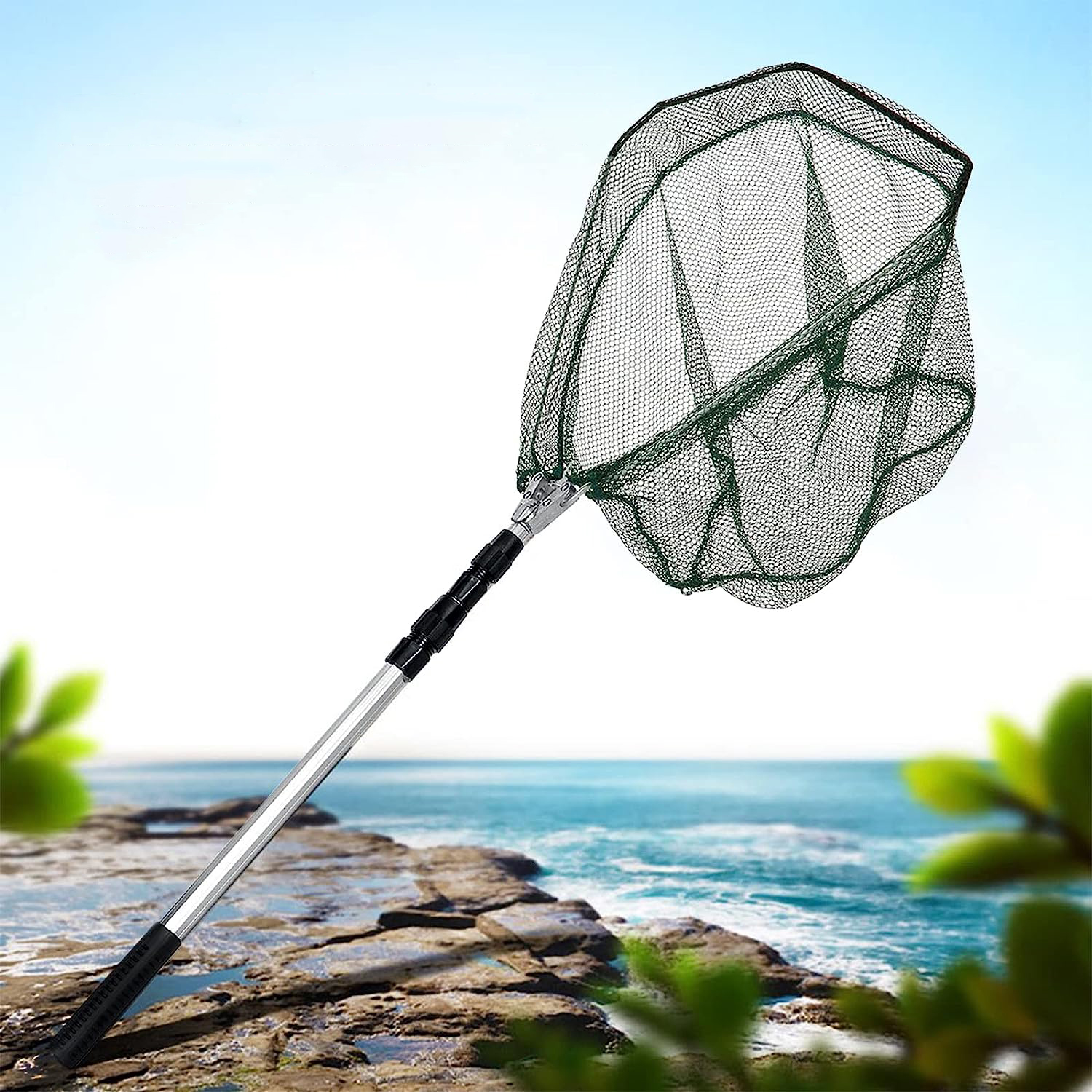 🐟🐟 Висока якість- Телескопічна рибальська вудка виготовлена з міцного алюмінієвого сплаву, який нелегко зігнути або зламати. Трикутна конструкція робить рибальську сітку стабільною та довговічною. Протиковзка гумова ручка забезпечує більш зручне захоплення.
