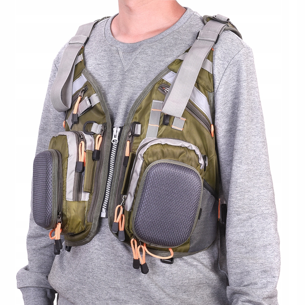 - Цей риболовецький жилет назовні з багатьма кишенями, кріпленими блискавкою, і сходи з багатьма причепами та петлями аксесуарів спереду та фари ззаду та спереду. Зовнішня частина відключається як носій риболовлі. І цей жилет буде відповідати майже кожній людині через регульовані смуги затискача. 4 Ретикулярна тканина всередині забезпечує високу дихаючу, що викликає професійне почуття безпеки, щоб врятувати життя.