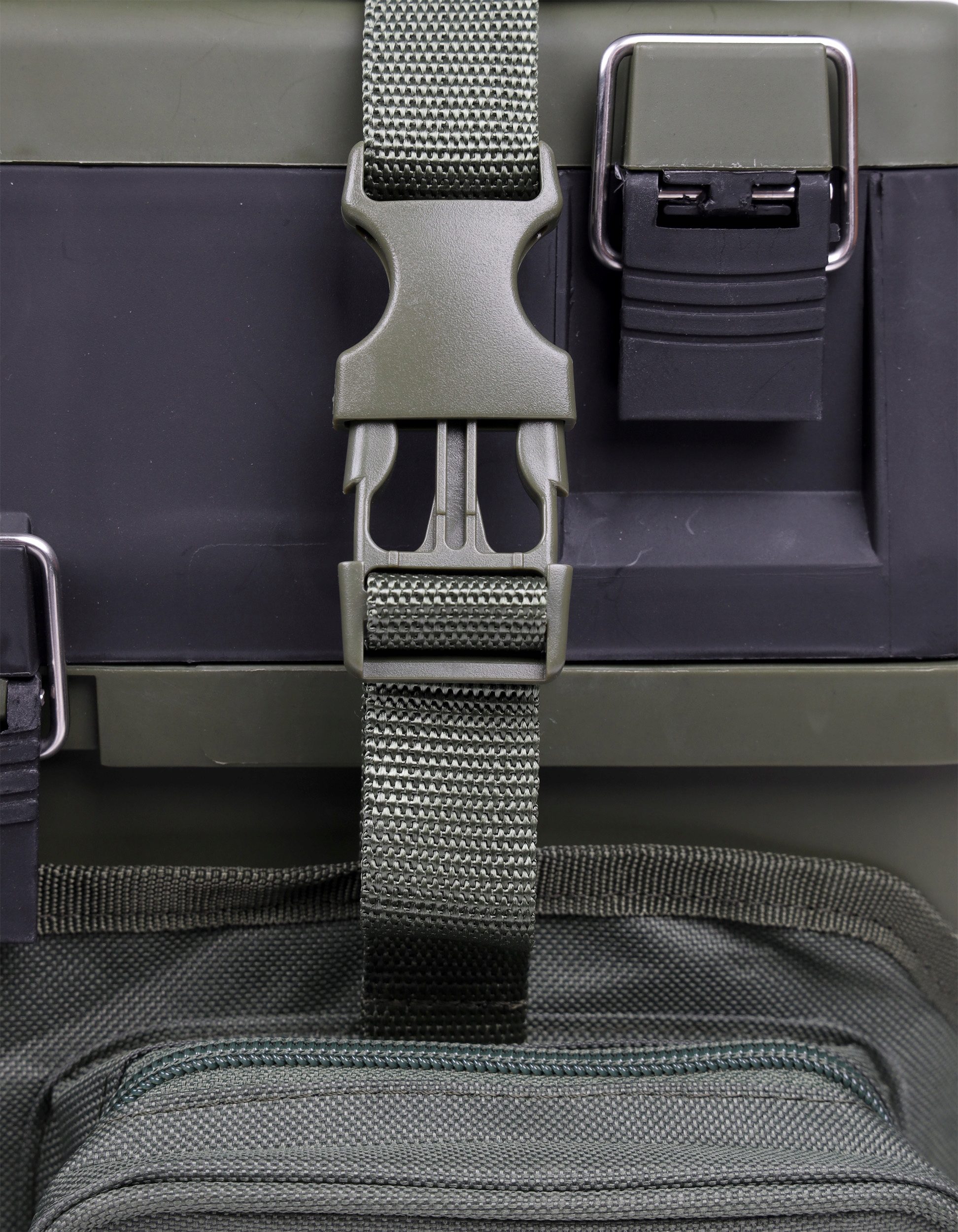 У підйомній кришці ви знайдете чотири коробки, закриті засувками, ідеальні для невеликого обладнання та приманок. У нижній частині кришки є касети з відділеннями, куди помістяться аксесуари середнього розміру?