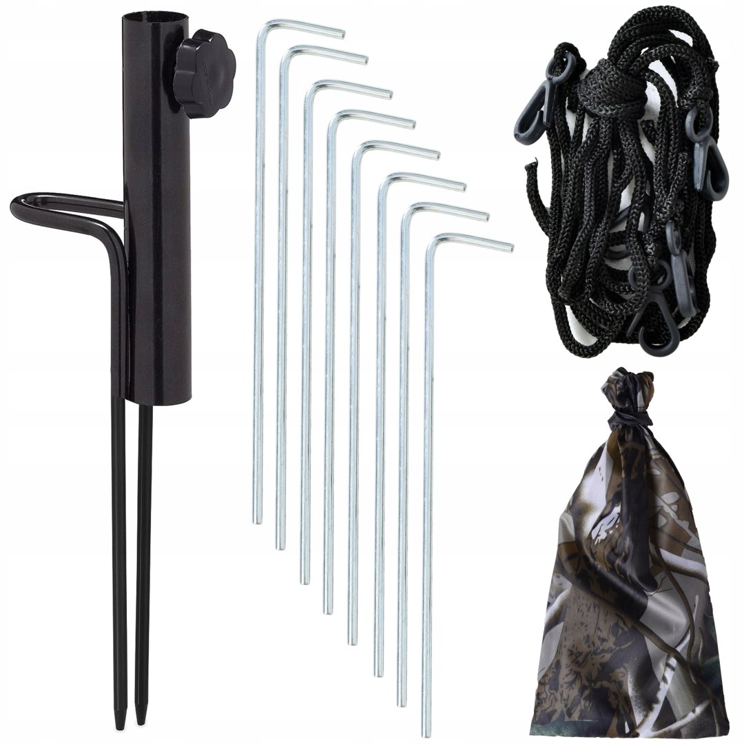 - ✅КОМПЛЕКТ МОНТАЖУ -Шпильки та мотузки дозволяють розтягнути парасольку, щоб стабілізувати всю конструкцію.