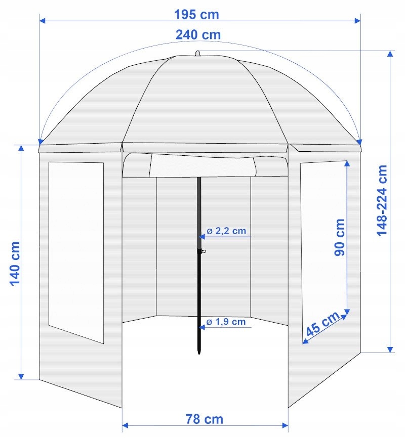 Парасолька регулюється по висоті, тому ми можемо легко пристосувати її до наших потреб. Вся парасолькаміцна і стійказавдяки ребрам жорсткості. Матеріал парасольки водонепроникний, а з'єднання додатково закріплені проклеєними швами.