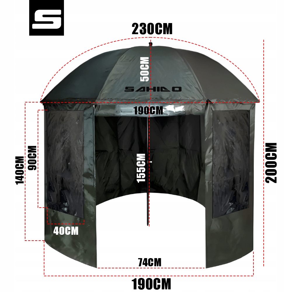 Повністю вбудована рибальська парасолька SAHIDO FISHING FULL SHIELD 220