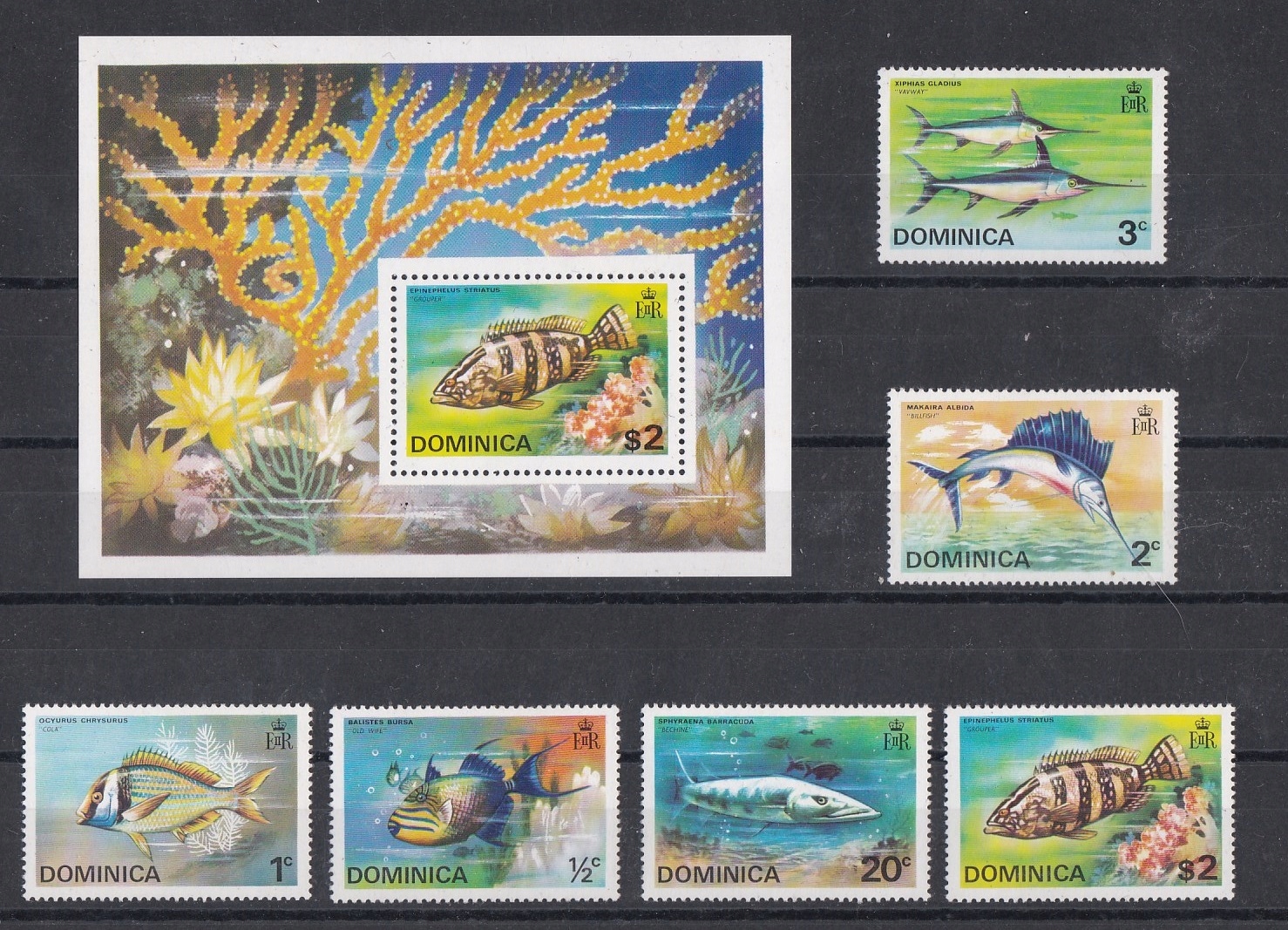 РИБИ ДОМІНІКА ТВАРИНИ ФАУНА - поштові марки, набір.