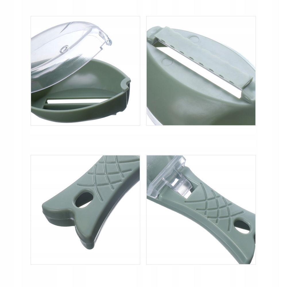 Я не думаю, що нікому подобається безлад, який переважає під час вискоблювання риби. Цей інструмент є рішенням проблеми безладу. Завдяки вбудованому контейнері, всі ваги подряпані завдяки спеціальному ножу зайти всередину і не плескати на кухні.