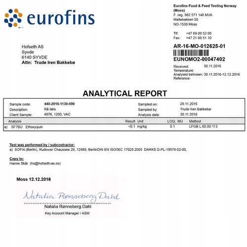 Лососі, вирощені з яких отримані Преміум Омега-3 регулярно перевіряються, щоб забезпечити чистоту, наприклад, у формі важких металів або хворої риби. холестерин, oxLDL GP. Ймовірно, це тому, що ця олія є натуральною тригліцеридною олією з природними властивостями та без побічних ефектів.