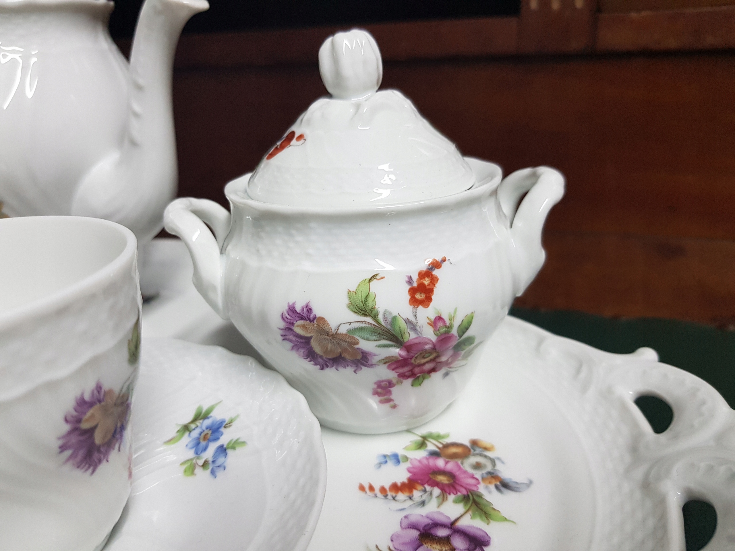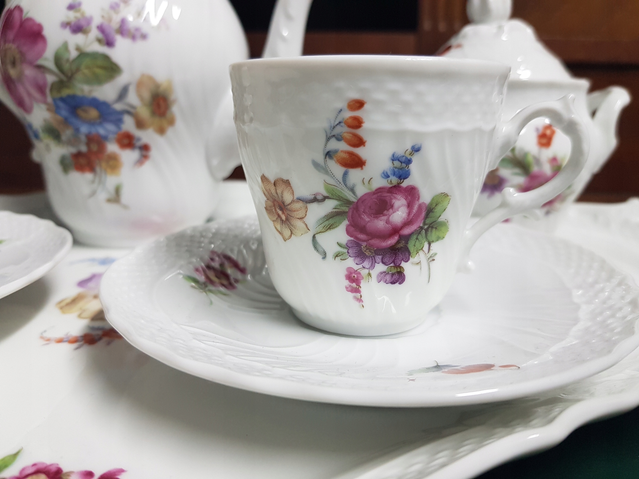 Предметом аукціону є набір мокко для двох від Річарда Джінорі Італія.В набір входить велика таця,глечик,цукорниці,молочник,2 чашки,2 блюдця.Біла порцеляна декорована квітковими мотивами. Рельєфи на поверхні порцеляни.
