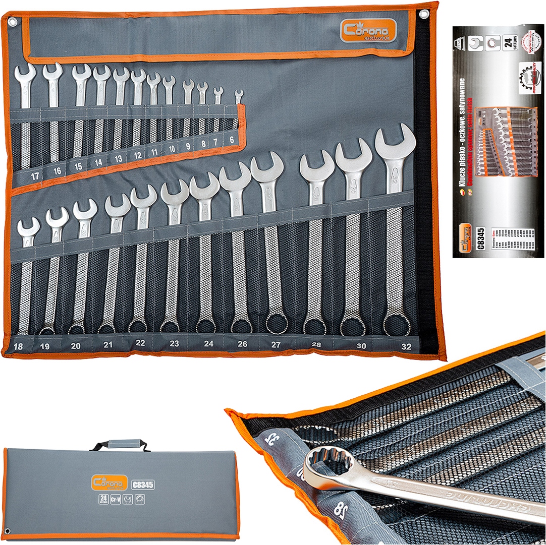 Набір із 24 атласних комбінованих ключів із хромованадієвої сталі (CR-V), надзвичайно міцних і стійких до корозії, окислення та високих температур. Завдяки міцній конструкції та універсальності розмірів набір ідеально підходить для широкого спектру застосувань.