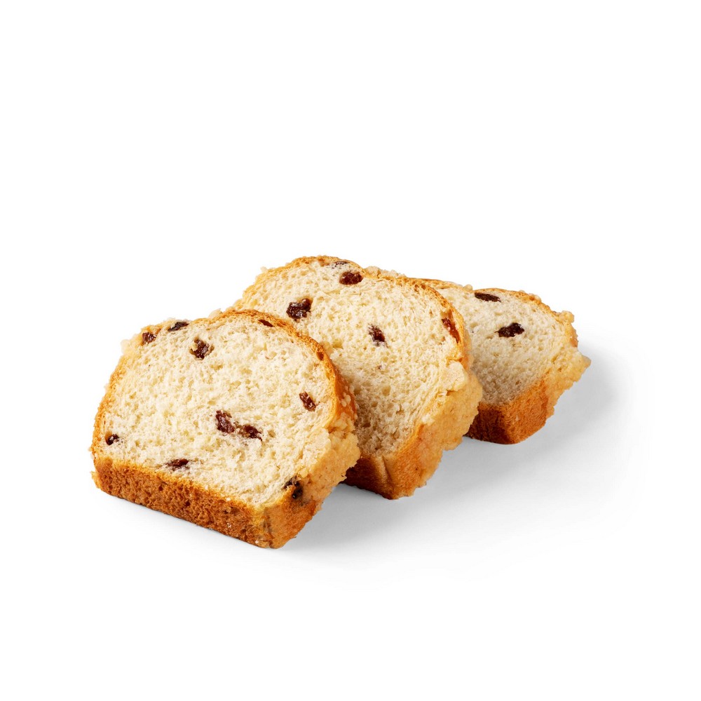 Інгредієнти: борошно пшеничне, цукор, пахта, яйця свіжі, ріпакова олія, родзинки 6% , дріжджі, сухе незбиране молоко, вершкове масло 1,5%, сіль, ароматизатор