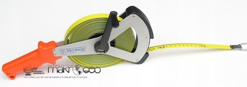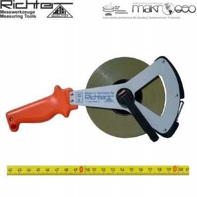 Стрічка геодезична рулетка німецької фірми Richter, пофарбована сталь, жовта, покрита поліамідом 404 V/50м, наконечник типу A p>
